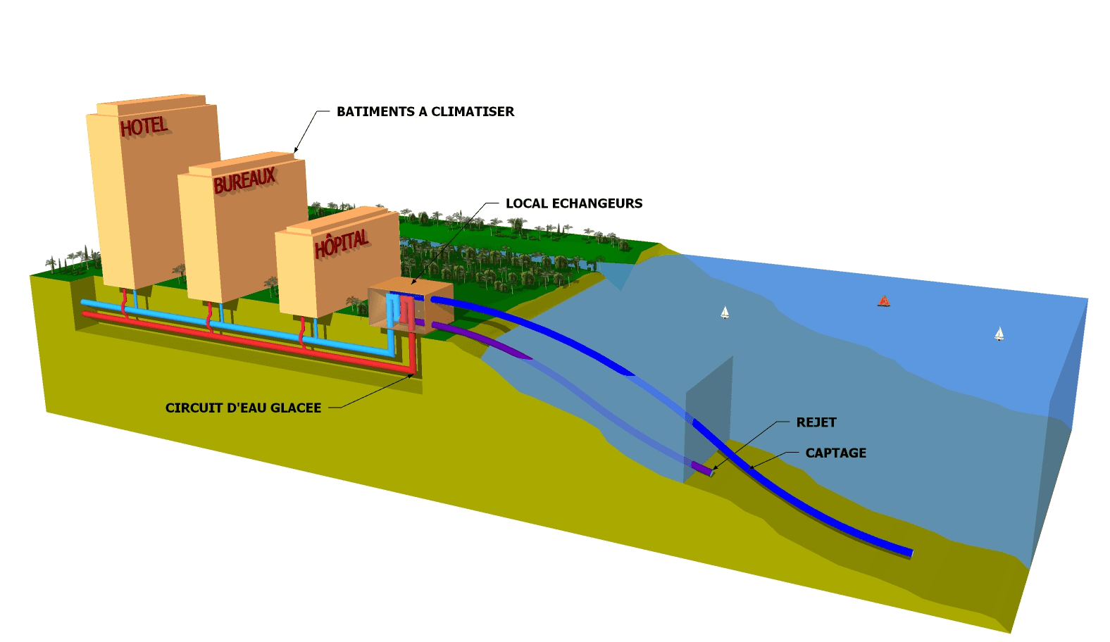 Un système de climatisation marine est le plus intéressant pour les territoires insulaires ; ils représentent le plus rapide retour sur investissement pour les raisons suivantes :